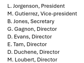 The Board of Directors for 2025-2026: